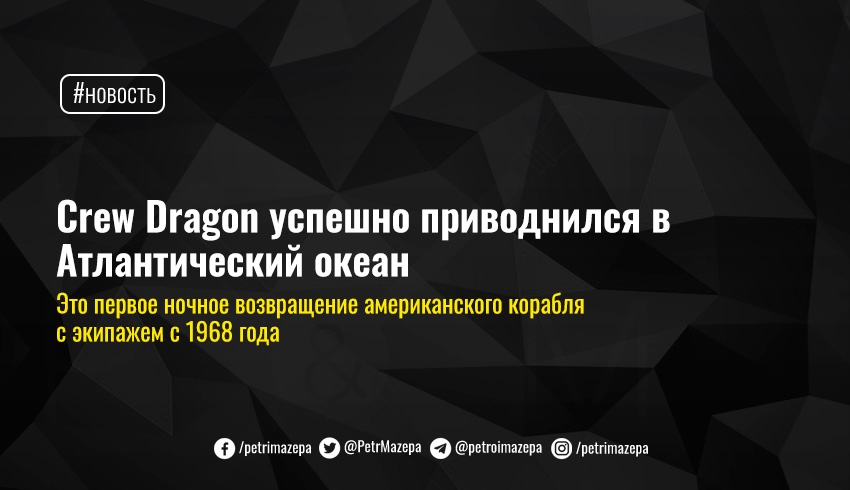 Посадку транслировало NASA. Она состоялась в районе Мексиканского залива у побережья Флориды.