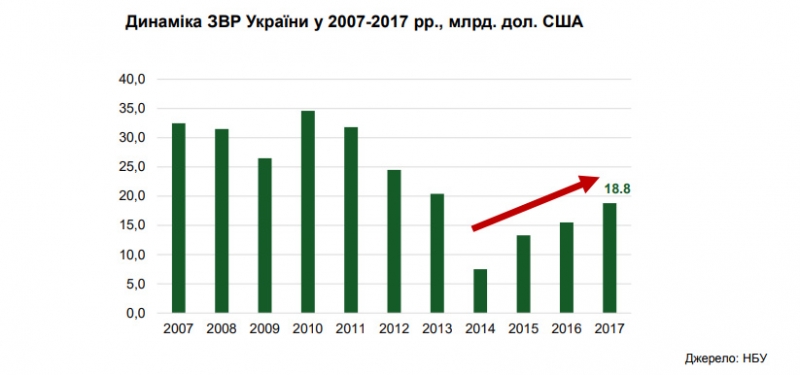 «Украинский объем международных резервов покрывает 3,6 месяца будущего импорта и является достаточным для выполнения обязательств Украины и текущих операций правительства и Национального банка. Однако этот показатель необходимо повышать - пока он ниже среднего по сравнению с другими развивающимися странами» - сообщается в презентации НБУ (смотреть PDF).