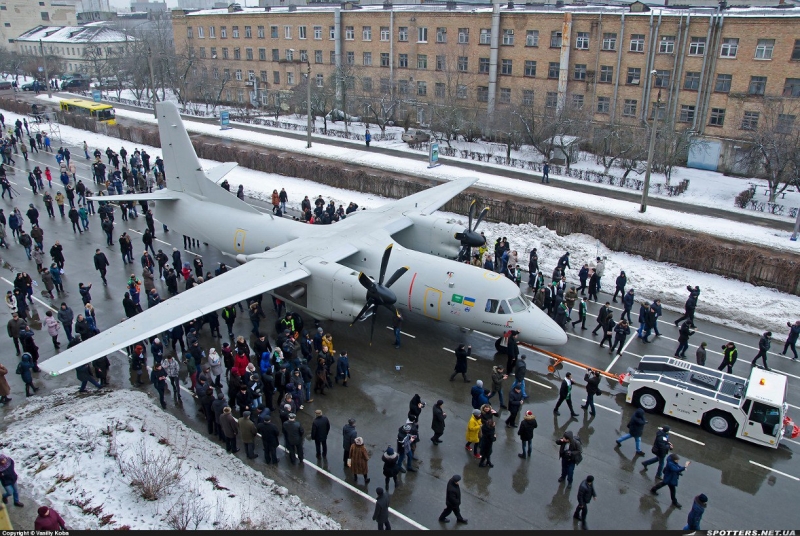 Несмотря на запрет на поставки комплектующих военного назначения из Украины в Россию, сборка этих самолётов в Воронеже продолжается. Министерство обороны Украины также решило заказать три самолета этого типа. После чего сразу же разразился скандал. Они должны были прийти на смену Ту-134, которые использует для деловых полётов министр обороны и начальник генштаба. Это не понравилось общественности, которая потребовала собирать самолеты в санитарной модификации. Заказ изменили на один самолёт в штабной версии, один в санитарной и один в морской патрульной. Но денег выделено не было, так как они должны были поступить от спецконфискации, а средств от неё оказалось недостаточно. Так что пока самолёты в Украине не производятся.