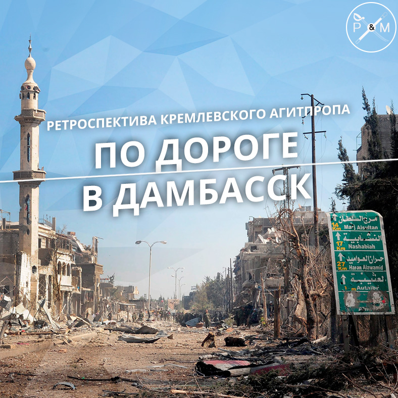 28 сентября в эфире «России-24» появился сюжет о боях на окраине Дамаска. Корреспондент Евгений Поддубный — знакомый по репортажам из Донецка. На нём та же каска и тот же бронежилет. Вокруг — героические ополченцы (он так и говорит о бойцах армии Асада: «по сути, те же ополченцы»). Просто они чуть более смуглые, чем привычные телезрителю герои Донбасса. Хотя, возможно, это пороховая копоть. И позывные у них арабские, пока ещё чужие русскому уху. Вместо снега — песок. И руины, так похожие на руины донецкого аэропорта. Впрочем, все руины похожи.