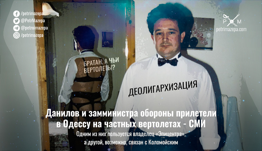 Секретарь Совета национальной безопасности и обороны Алексей Данилов и заместитель министра обороны Александр Миронюк прилетели в Одессу на частных вертолетах: одним пользуется владелец «Эпицентра», а другой, возможно, связан с олигархом Игорем Коломойским.