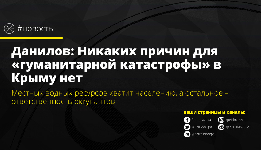 Данилов в Facebook написал: «Никаких оснований для "гуманитарной катастрофы" на полуострове из-за якобы недостатка воды не существует. Местные водные ресурсы способны удовлетворить хозяйственно-бытовые нужды населения. А проблему водообеспечения украденных промышленных сельскохозяйственных и других предприятий, а также российских военных объектов пусть решает российская оккупационная власть».