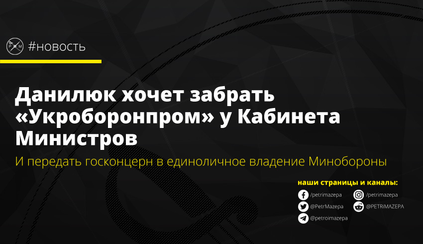 Данилюк хочет забрать «Укроборонпром» у Кабинета Министров