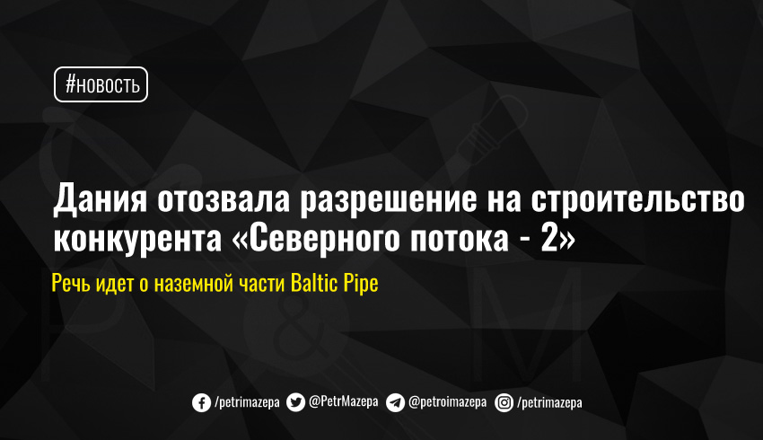 Дания отозвала разрешение на строительство наземного участка газопровода Baltic Pipe на территории страны. Это означает, что работы на участке в 210 км должны быть остановлены, а сроки завершения газопровода, который должен снизить зависимость Европы от российского газа, скорее всего будут сдвинуты.