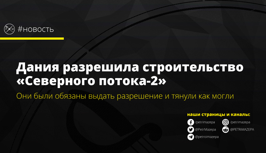Датское энергетическое агентство сегодня сообщило о предоставлении Nord Stream 2 AG разрешения на строительство участка газопровода «Северный поток-2» на континентальном шельфе Дании к юго-востоку от Борнхольма в Балтийском море.