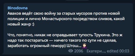 Трухин обещал полицейским, что будет разговаривать с начальством полицейских. Конкретно – с Денисом. В интервью Михаилу Ткачу полицейский, который был на месте происшествия, подтвердил, что потом Трухин уточнил, что речь идет про главу МВД Дениса Монастырского.