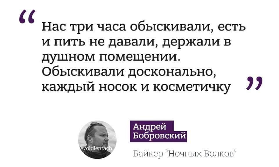 Любимцев Путина, «Ночных волков», так и не пустили в Польшу - развернули домой прямо на границе. Пресс-секретарь Надбужаньского отделения погранохраны Польши Дариуш Сеницкий аргументировал такое решение тем, что байкеры не выполняют условий въезда на территорию Польши. Вместе с мотоциклистами не впустили съемочную группу НТВ, им объяснять причину отказались.