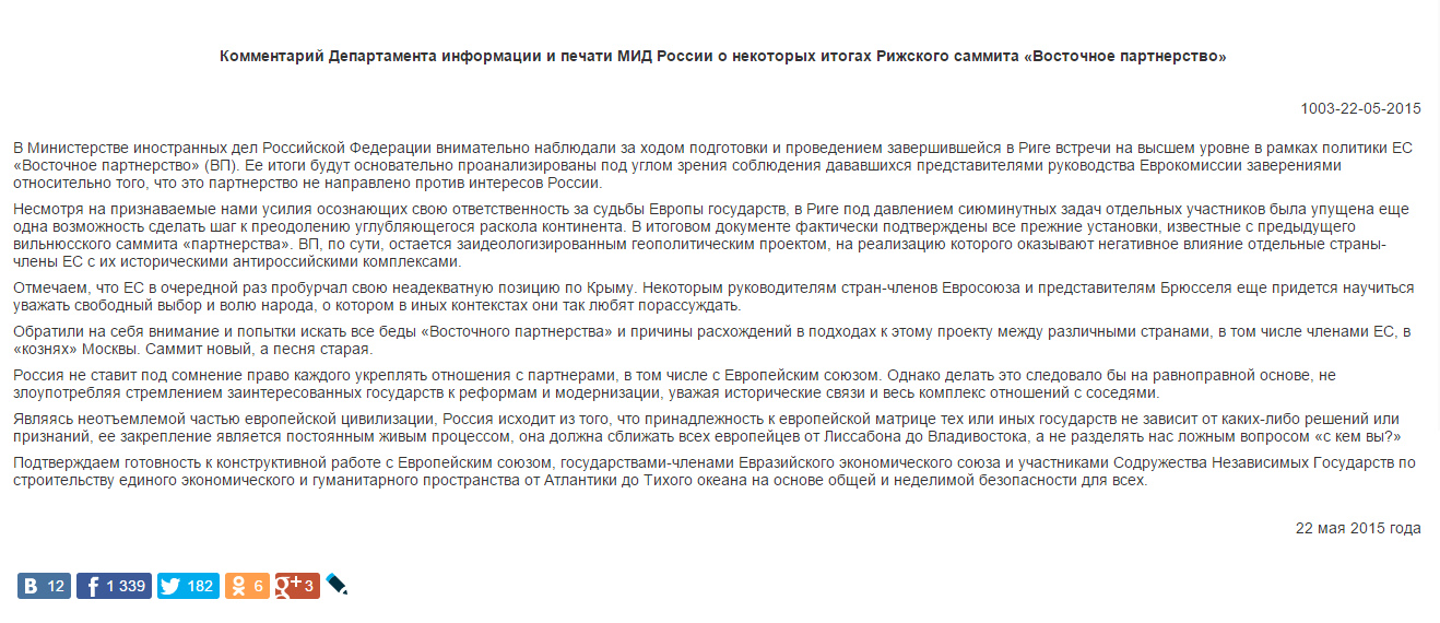 Комментарии МИД России по "Восточному партнерству".