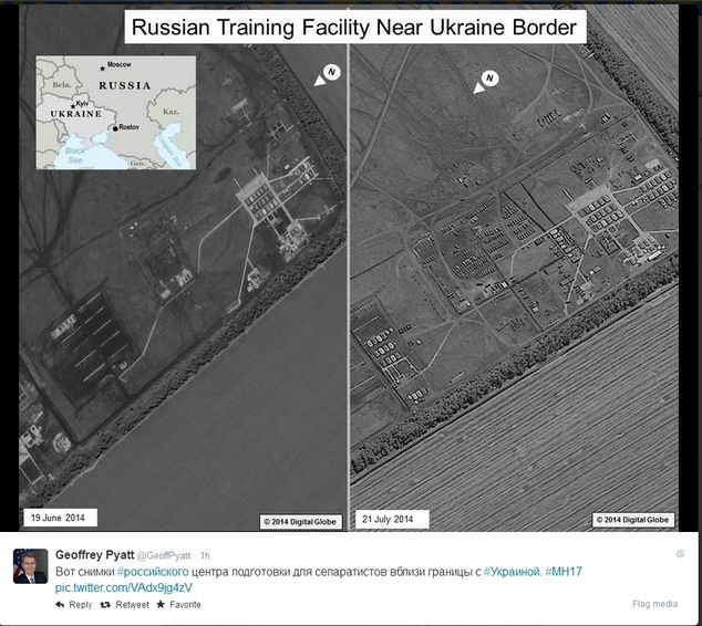 Посол США в Украине опубликовал спутниковые снимки с указанием местоположения лагеря тренировки пророссийских боевиков под Ростовом.
