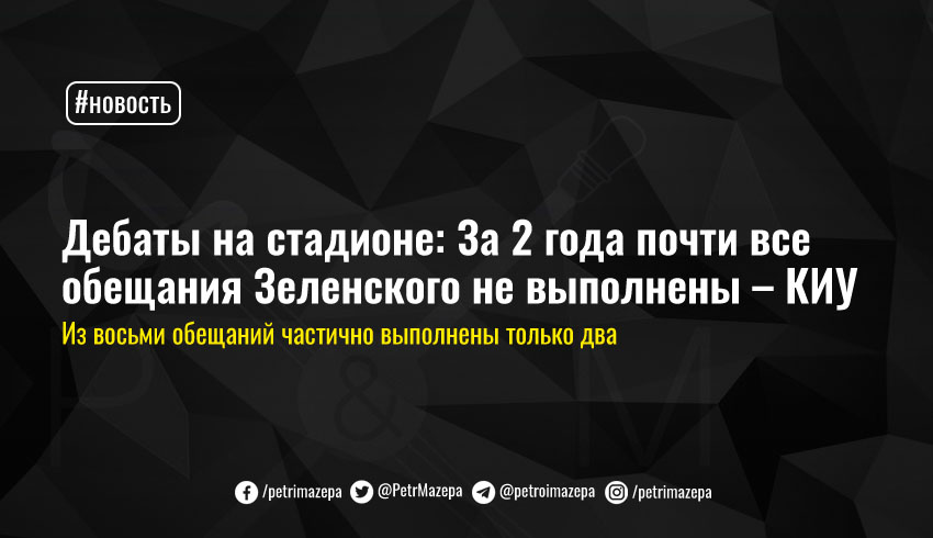 Дебаты на стадионе: За 2 года почти все обещания Зеленского не выполнены – КИУ