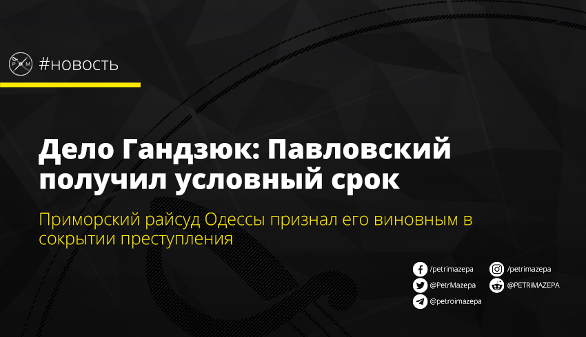 Приморский районный суд Одессы признал фигуранта дела херсонской активистки Екатерины Гандзюк Игоря Павловского виновным в сокрытии преступления.