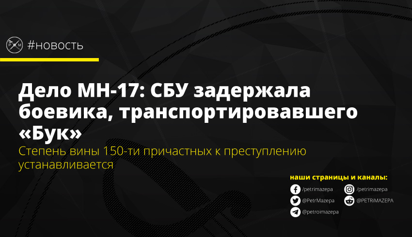 Служба безопасности установила и задержала водителя автотягача, которым перевозили зенитно-ракетный комплекс «Бук», сбивший самолет Malaysia Airlines на Донбассе в 2014 году. В целом, расследуется степень причастности к преступлению 150-ти человек.