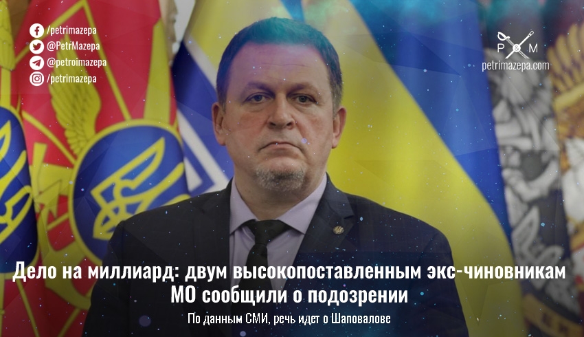 Бывшему заместителю Министерства обороны Украины сообщили о подозрении по делу о закупках некачественной амуниции для ВСУ на более чем миллиард гривень. По данным СМИ, речь идет о Вячеславе Шаповалове, которому ранее уже сообщали о подозрении в причастности к закупкам по завышенным ценам.