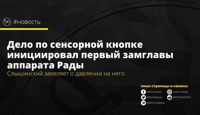 Сам Слышинский рассказал журналистам, что обратился в ГРБ с сообщением о том, что запуск этой кнопки может привести к парализации голосования в парламенте, сообщает Lb.ua. По словам замглавы аппарата ВР, еще при тестировании сенсорной кнопки в 2013 году было установлено, что она не гарантирует бесперебойной работы и персонального голосования.