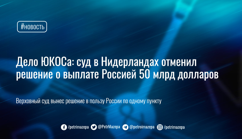 Дело ЮКОСа: суд в Нидерландах отменил решение о выплате Россией 50 млрд долларов