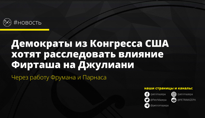 Группа демократов в Конгрессе США говорят о необходимости проверки причастности украинского олигарха Дмитрия Фирташа к финансированию партнеров личного адвоката Трампа – Руди Джулиани.
