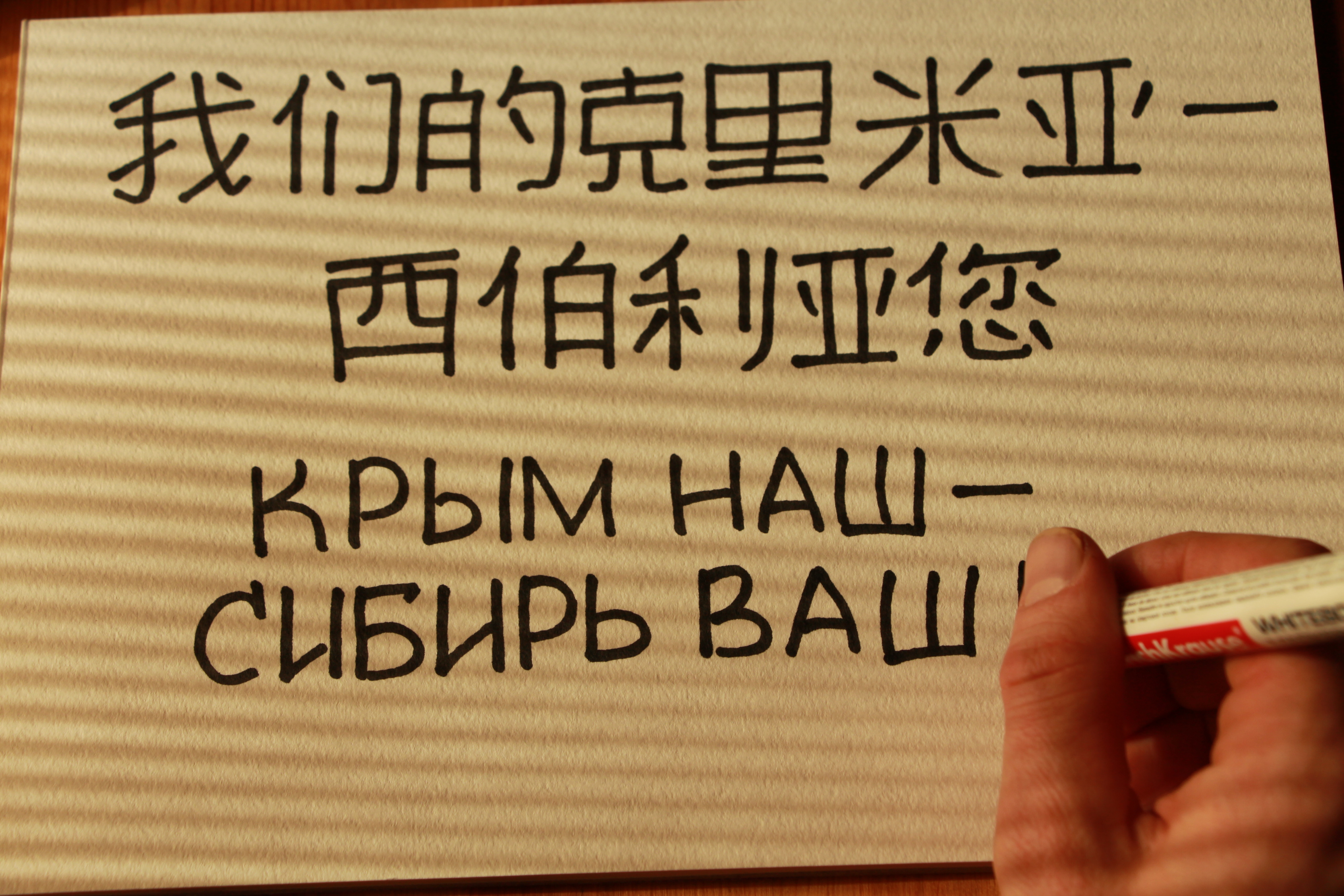 Чёрные иероглифы свёрнуты и помещены в зелёную тару, хранившую крымское солнце и игристое вино. Мы купили бутылку на голицынском заводе шампанских вин, когда заканчивался последний сезон перед аншлюсом. А выпили уже на Дальнем Востоке, с экстремистскими для России тостами. Теперь в пустой бутылке закупорен «крымнаш» – заклинание, которое вызывает демона войны. Потревожишь демона – и никуда не деться от продолжения фразы.