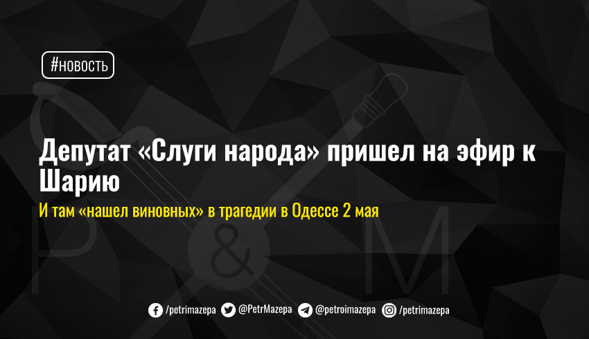 Депутат «Слуги народа» Артем Дмитрук принял участие в выпуске программы пророссийского пропагандиста Анатолия Шария о событиях 2 мая 2014 года в Одессе.