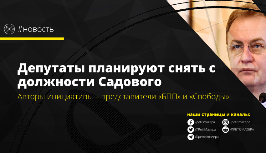 Документ, касательно досрочного прекращении полномочий Садового зарегистрировали лидер фракции «Блок Петра Порошенко» в горсовете Петр Адамык, депутат от «БПП» Григорий Козловский и лидер местной фракции «Свобода» Маркиан Топачак, сообщил Садовый в своем Twitter-аккаунте.