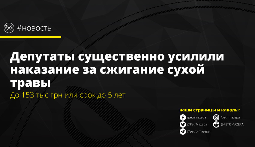 - В тот же день Кабмин призвал ВР увеличить штрафы за поджог травы.