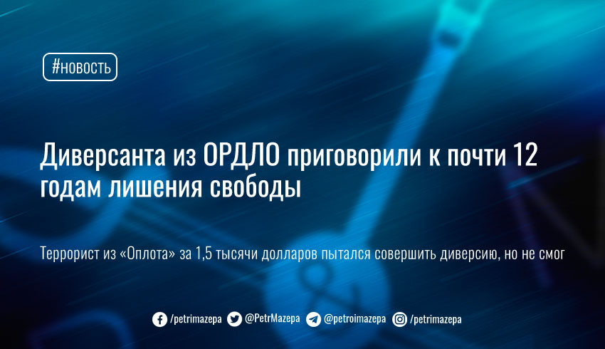 В Донецкой области суд вынес приговор местному жителю, который по указанию НВФ РФ и за 1,5 тысячи долларов пытался совершить диверсию. Обвиняемый был раскрыт при попытке подорвать опору линии электропередач, и теперь приговорен к 11 годам 10 месяцам лишения свободы.