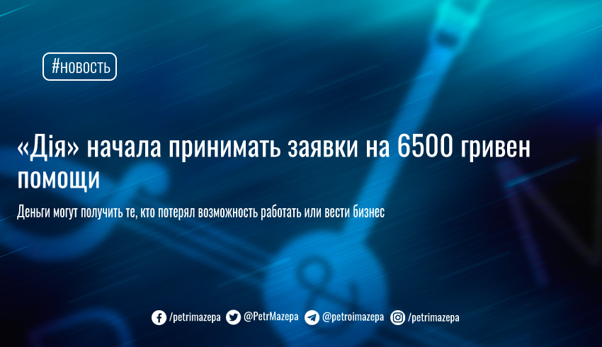 «Дія» начала принимать заявки на 6500 гривен помощи