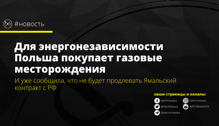 Польская государственная нефтегазовая компания PGNiG сообщила, что не планирует продлевать Ямальский договор с РФ. Срок его действия заканчивается 31 декабря 2022 года, и он содержит то же условие «бери или плати», которое успешно оспорил «Нафтогаз». К этому времени Польша планирует диверсифицировать поставки газа, в том числе и за счет покупки месторождений за рубежом.