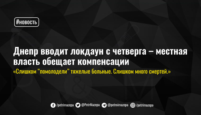 В Днепре с 25 марта вводятся ограничения «красной» зоны карантина, хотя город к ней еще не относится по эпидемиологическим показателям. Местная власть продумывает механизмы компенсации и постарается сделать локдаун максимально комфортным для бизнеса, однако заявляет, что не намерена ждать до последнего, а потом «мучиться с коллапсом системы здравоохранения».