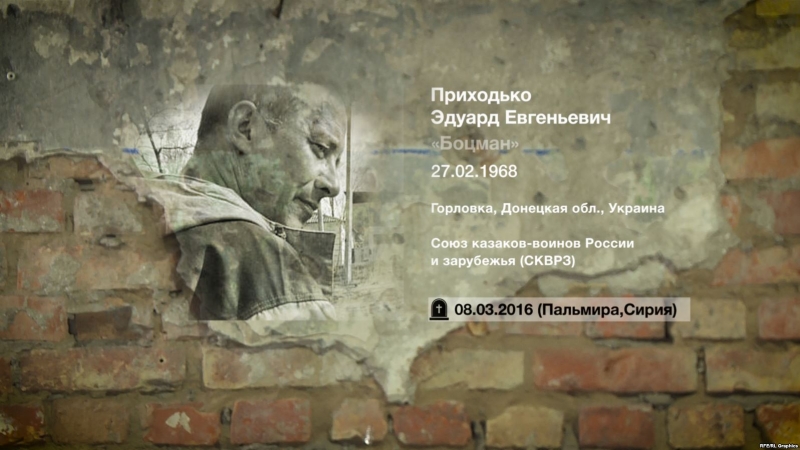 Перший — Приходько Едуард Євгенович, позивний Боцман. На момент загибелі йому було 48 років. Зареєстрований у Горлівці. Він воював на боці угруповань «ЛНР» і «ДНР» на Донбасі. Загинув у районі сирійського міста Пальміра 8 березня 2016 року.