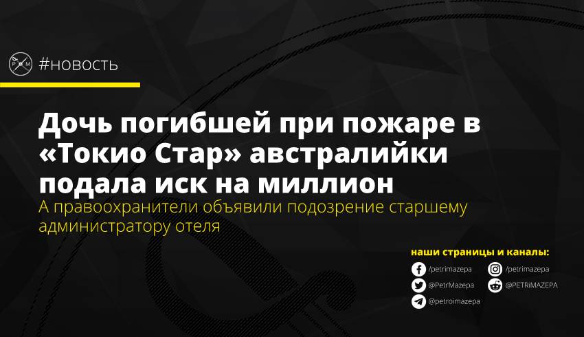 Дочь погибшей при пожаре в «Токио Стар» австралийки подала иск на миллион