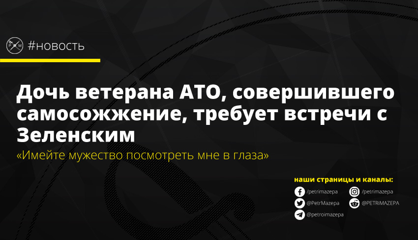 Юлия Микитенко, дочь ветерана АТО Николая Микитенко, который совершил самосожжение в знак протеста против политики Владимира Зеленского, обратилась к главе государства с требованием встречи.