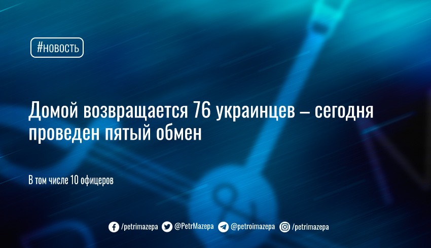 «Сегодня мы обменяли 60 военнослужащих, из них 10 офицеров. Также домой возвращаются 16 гражданских лиц. Это был пятый обмен пленными. Всего 76 человек», — написала она в Facebook.
