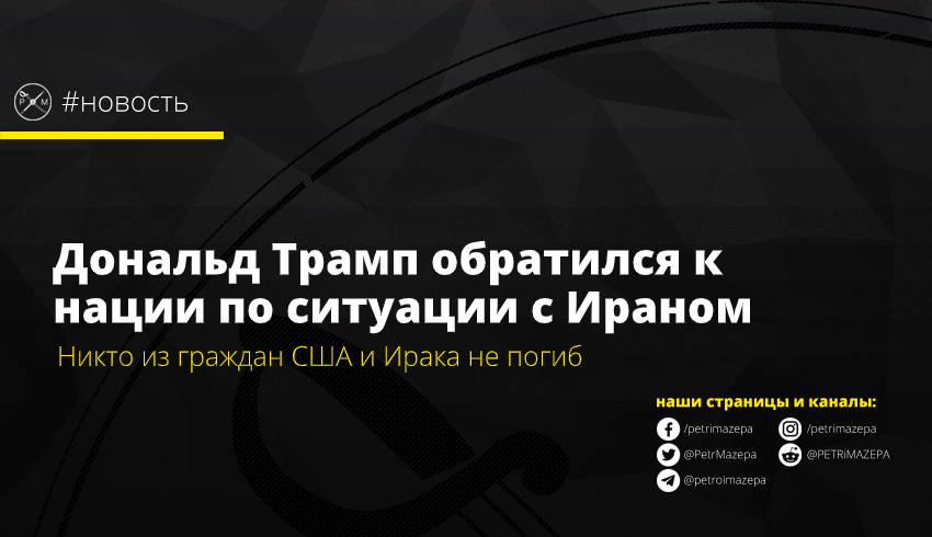 Президент США Дональд Трамп обратился к нации после того, как ночью Иран обстрелял две американские военные базы в Ираке. Он отметил, что во время обстрелов не пострадал никто, несмотря на заявления иранской стороны. Также минимальный урон был нанесен военной технике, расположенной на базах