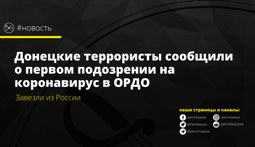 Данный случай является первым, когда говорящие головы террористов сообщили о госпитализации именно с подозрением на коронавирус. В то же время, на неподконтрольной официальным властям Украины территории Донецкой области, нет лаборатории для обнаружения коронавируса. Поэтому террористы будут отправлять анализы в одну из лабораторий РФ.