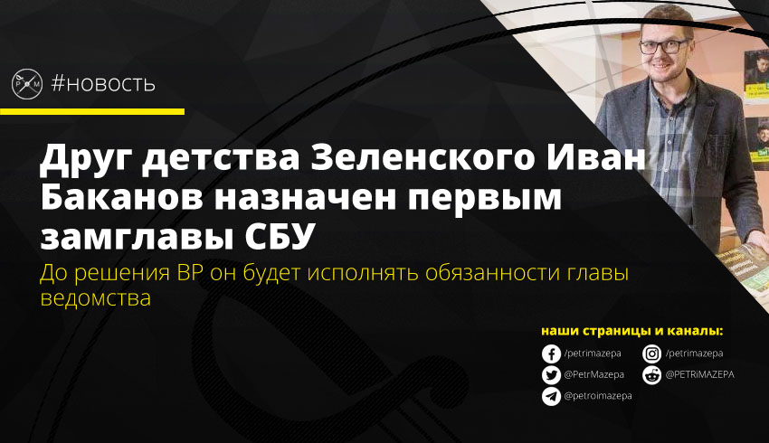 Президент Владимир Зеленский назначил своего друга детства, руководителя «95 Квартала» и лидера партии «Слуга Народа» Ивана Баканова первым замглавы СБУ. До назначения главы ведомства по решению Верховной Рады он как первый заместитель будет исполнять обязанности главы Службы безопасности Украины.