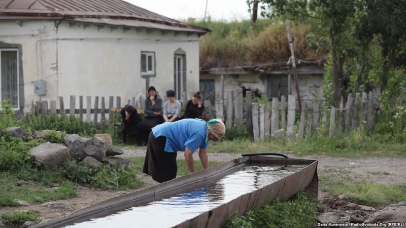 Пока говорим с Джамалом, из соседнего дома выходит женщина с подносом, на котором — хрустальные бокалы и кувшин с компотом. «Это для вас угощение», — говорит она. «А если бы они были православными, то принесли бы вино», — поясняет мне коллега из Грузии.