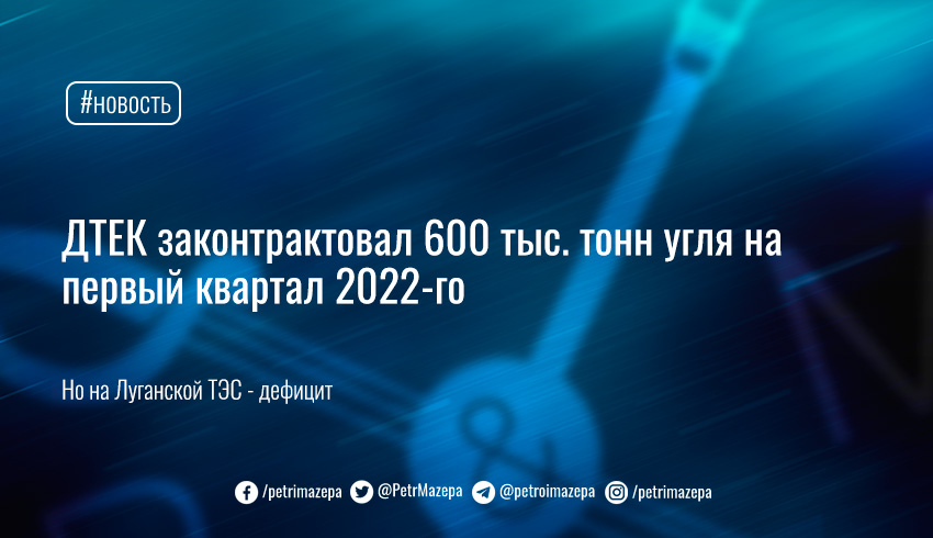 Холдинг ДТЕК, принадлежащий олигарху Ринату Ахметову, законтрактовал 600 тыс. тонн угля на первый квартал следующего года, но имеет дефицит антрацита для Луганской ТЭС.