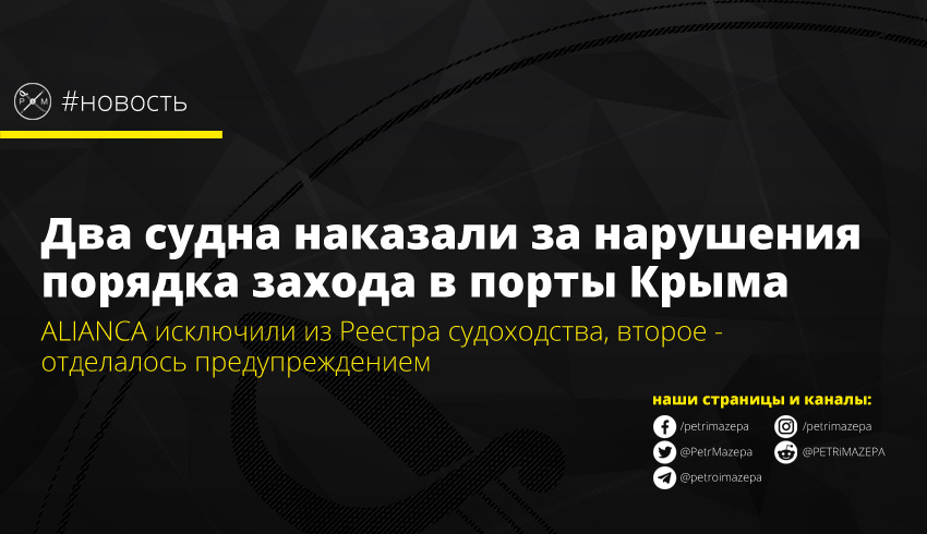 Прокуратура Автономной Республики Крым установила факт нарушения судами RANI и ALIANCA порядка въезда/выезда на временно оккупированную территорию полуострова. По результатам проведенного расследования, одно из суден было исключено из Реестра судоходства, второе – получило предупреждение.