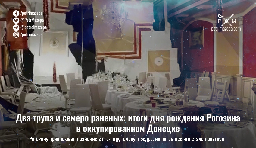 Как пишет российский «РБК» пишет, что Рогозин отмечал в ресторане свой день рождения. 21 декабря ему исполнилось 59 лет. «Новости Донбасса» сообщают, что при обстреле ресторана погибли два человека, семеро ранены.