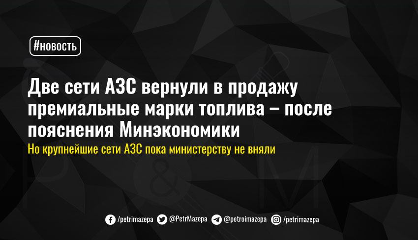 - Сегодня стало известно, что Минэкономики выпустило пояснение – мол, «брендовое премиальное» топливо под ограничения не подпадает. Правда в постановлении такого понятия как «брендовое» нет, есть только А-92, А-95, и дизель.