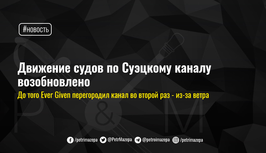 Движение судов по Суэцкому каналу, который почти неделю был заблокирован контейнеровозом Ever Given, возобновили.