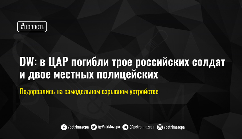 Взрыв произошел в районе поселка Бондиба, когда колонна возвращалась к месту базирования, сообщает Deutsche Welle. По данным СМИ, в результате инцидента погибли российские солдаты одного из военизированных формирований в ЦАР.