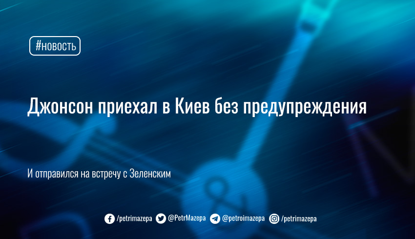Джонсон в Twitter сообщил, что приехал обсудить с Зеленским долгосрочную поддержку Украины со стороны Соединенного Королевства, в частности новый пакет финансовой и военной помощи.