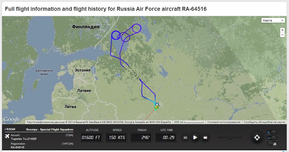 P.S.: Ну и напоследок – самая дикая новость с родины морошки и туеска: полетная карта правительственного борта RA-64516, навернувшего вчера десяток кругов над островом Валаам.
