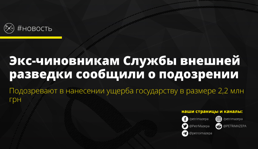 Национальное антикоррупционное бюро (НАБУ) сообщило о подозрении трем бывшим должностным лицам Службы внешней разведки в злоупотреблении служебным положением. По версии следствия, в результате неправомерной деятельности государству был нанесен ущерб в размере 2,2 млн грн (80 тыс долл).