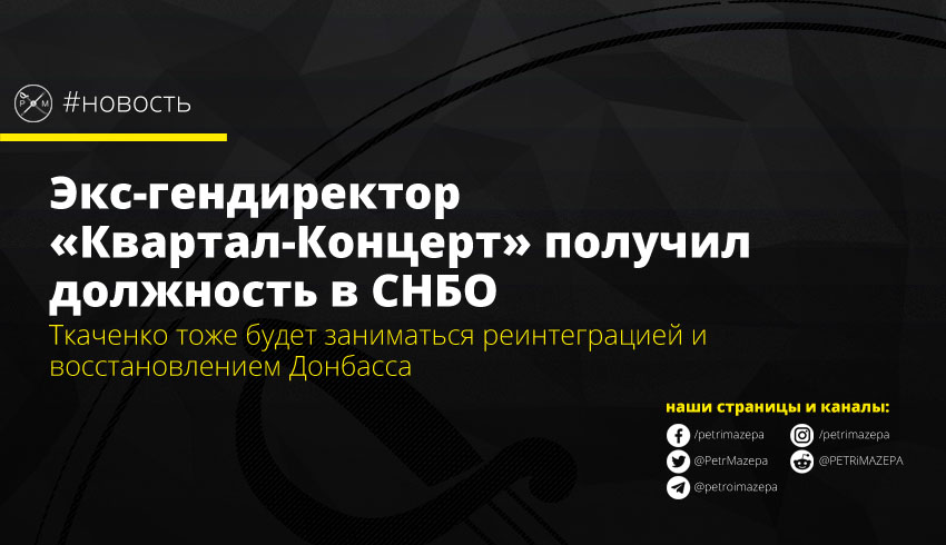 Замглавы фракции «Слуга народа», экс-гендиректор «Квартал-Концерт» Максим Ткаченко стал советником секретаря СНБО по вопросам реинтеграции и восстановления Донбасса.