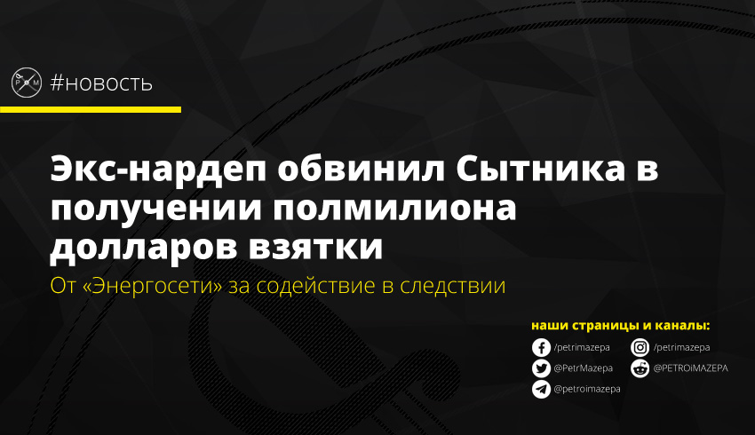 Экс-нардеп Дмитрий Крючков, которого НАБУ подозревает в махинациях в энергетической сфере, обвинил директора НАБУ Артема Сытника в получении взятки от «Энергосети», владельцем которой он был.
