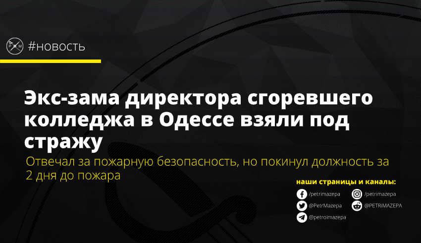 Киевский районный суд Одессы взял под стражу бывшего заместителя директора Одесского колледжа экономики, права и гостинично-ресторанного бизнеса, в котором в 2019 году из-за пожара погибли 16 человек.