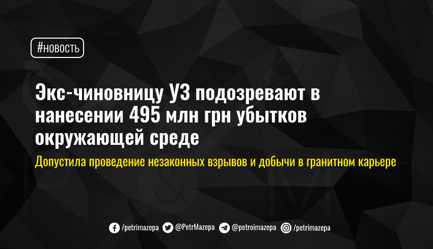 В пресс-службе Офиса генерального прокурор сообщили, что она не обеспечила надлежащее оформление разрешений на взрывы в гранитном карьере. По данным следствия, речь идет о 5 незаконных взрывах с мая 2017 по октябрь 2018 года. Тогда добыли почти 219 тысяч кубических метров габбро-анортозита, гранита и габбро-норита.