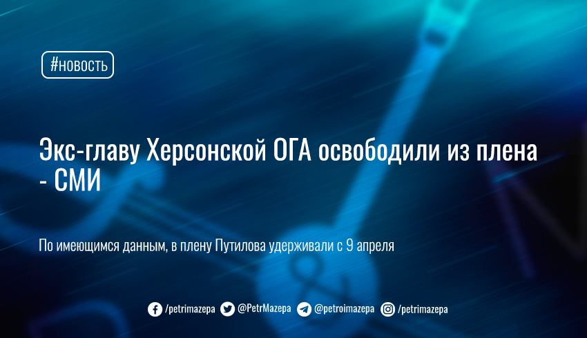 Об этом сообщает «Суспільне», ссылаясь на советника главы Херсонской ОГА (ОВА) Сергея Хланя. По его словам, Путилова освободили 19 июня. Сейчас он дома.
